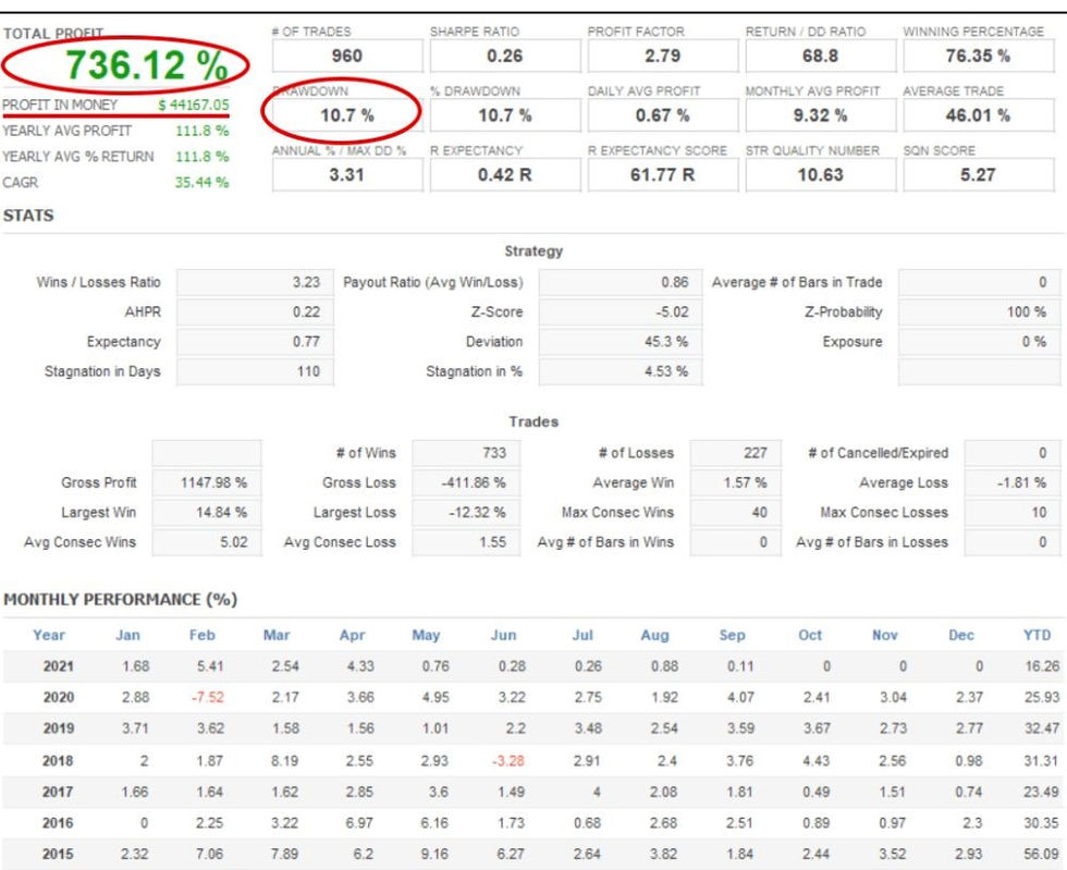 - Low Drawdown with High Win Rate: Conservative settings, aggressive results.